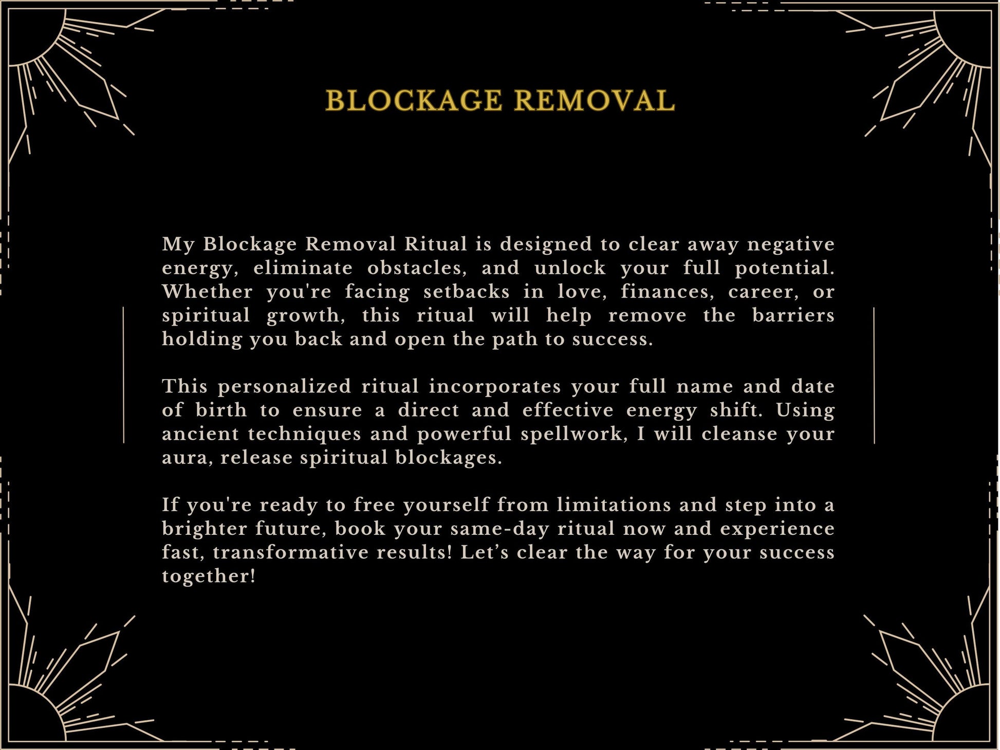 BLOCKAGE REMOVAL RITUAL Release all Blockages Eliminate Obstacles and Unlock Your Full Potential Same Day Fast Results Done by MotherOdessa
