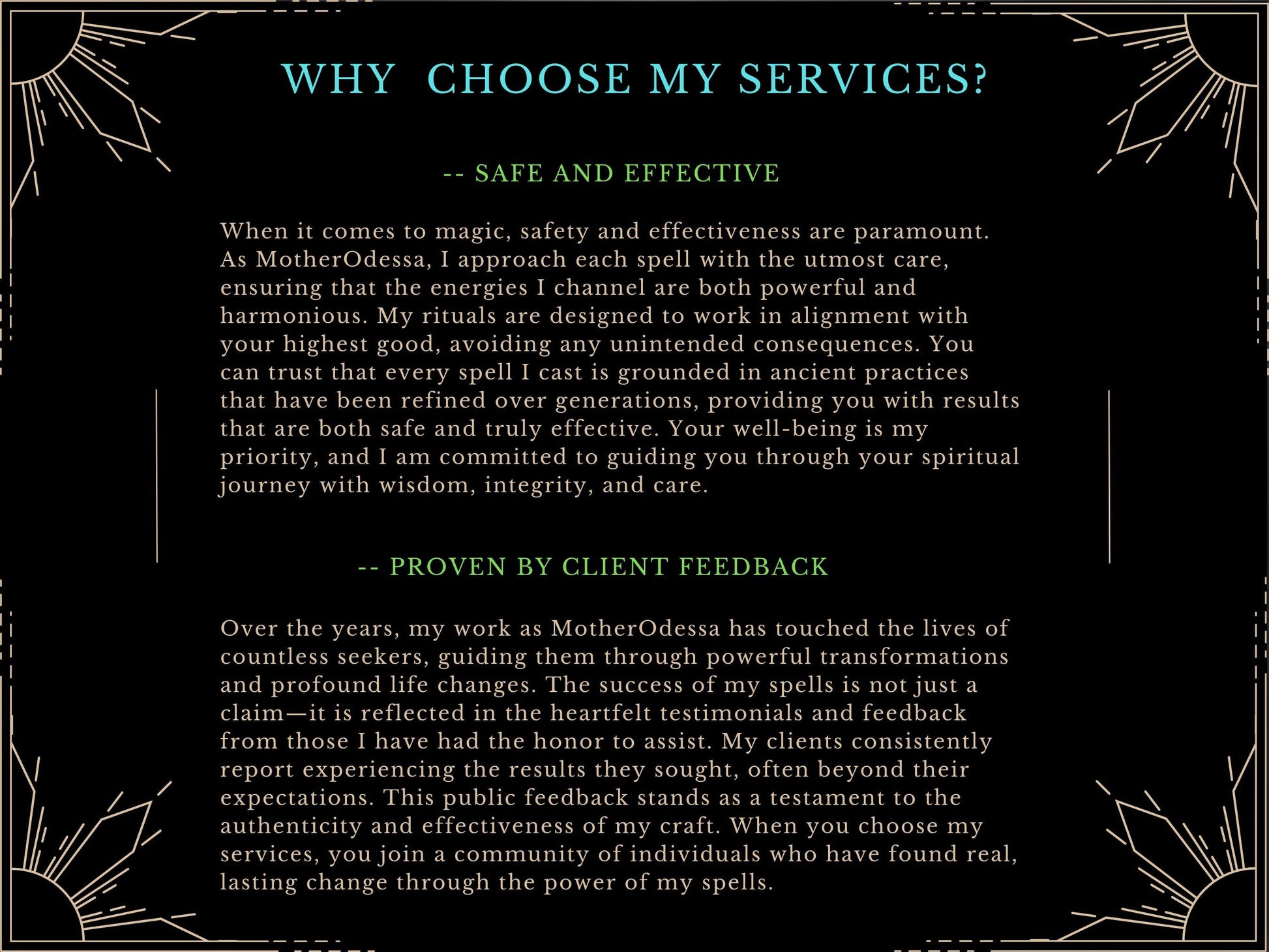 - **Compassionate but Powerful Work:** I understand the importance of justice, and I approach every curse with the necessary power and intention to achieve results.